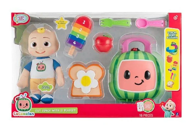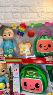 ستِ اورجینالِ کوکوملون با طرف غذا و قاشق و چنگال عروسک ش و چند تکه اسباب بازی پازلی و دست ورزی جهت افزایش تمرکز و سرگرمی بچه ها