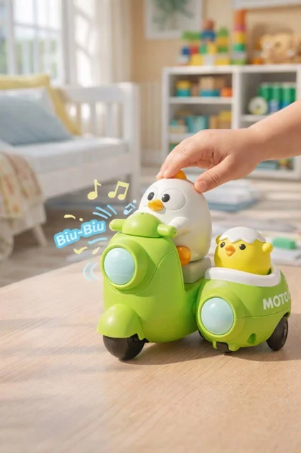موتور بامزه جوجهای، اسباببازی فشاری بدون نیاز به باتری است که با فشار دادن سر عروسک حرکت میکند و لحظاتی شاد و پرانرژی برای کودکان شما رقم میزند. مناسب برای رشد خلاقیت و سرگرمی سالم خردسالان و کودکان.