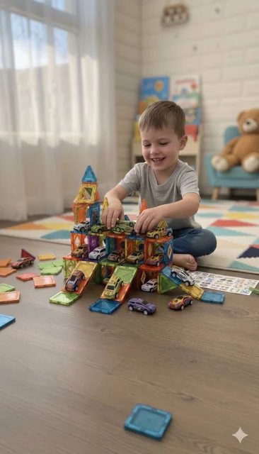 با این قطعات مگنتی باکیفیت و متنوع، کودکان میتوانند هر سازهای که در ذهن دارند، از پلها و رمپهای پیچیده گرفته تا خانههایی برای ماشینهایشان، بسازند. هر قطعه با طول ضلع 5.5 سانتیمتر، طراحی شده تا به راحتی به هم وصل شود و ایدههای بینظیر آنها را به واقعیت تبدیل کند.