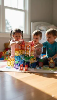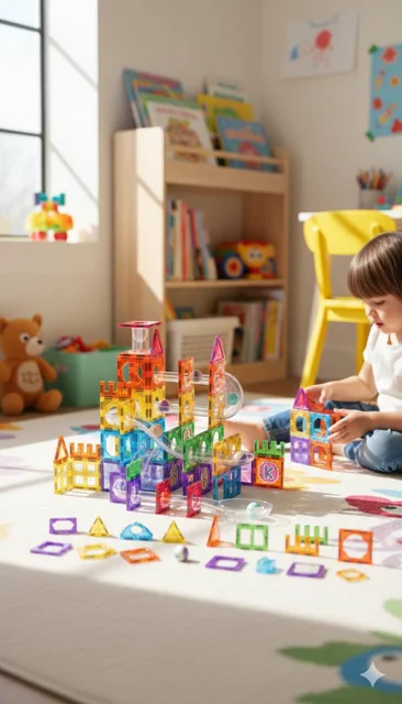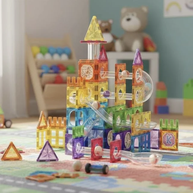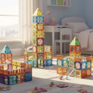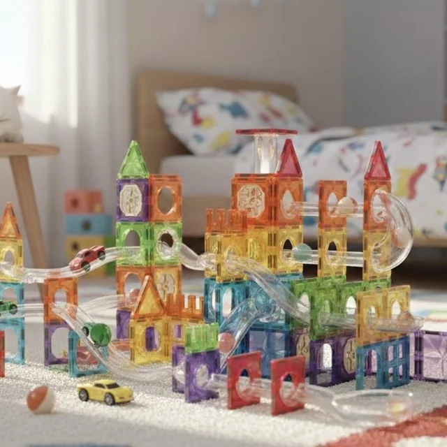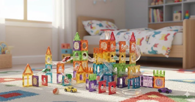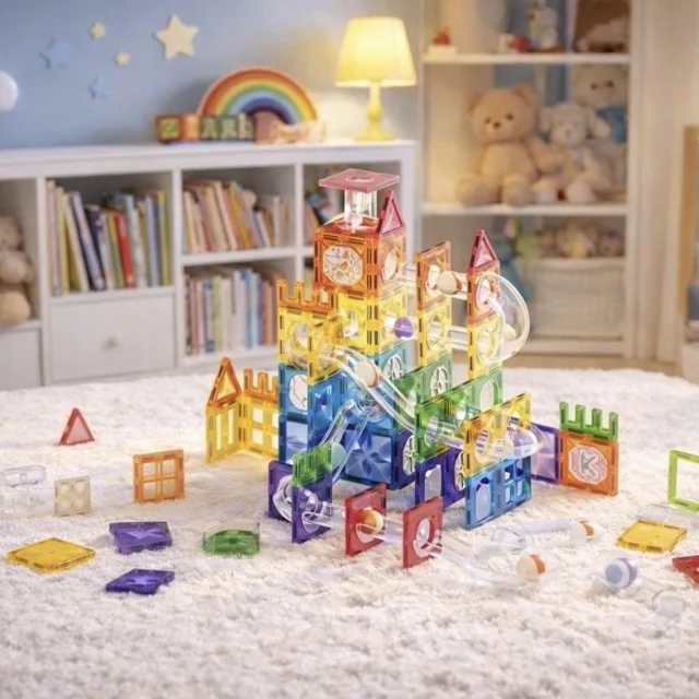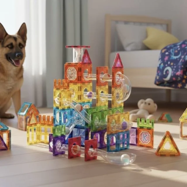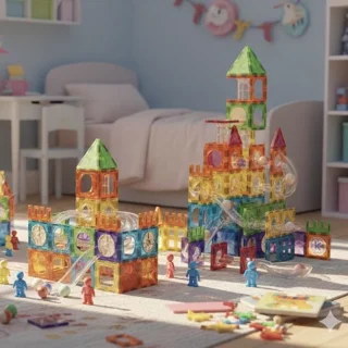 • مهندسی و معماری در خانه: با استفاده از قطعات متنوع (مثل تایلهای مربعی، مثلثی و پنجرهای)، کودک میتواند برجها، قلعهها و سازههای سهبعدی پیچیده بسازد.