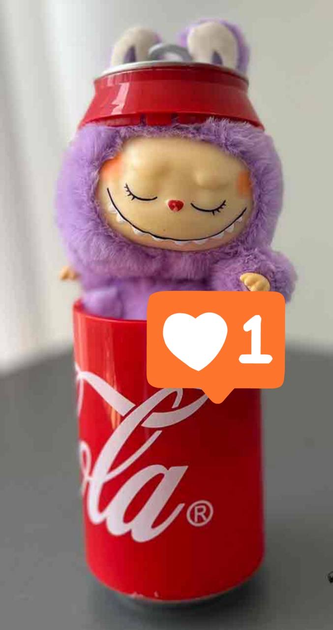 لبوبوی کوکا با طرح و رنگِ خاص کاملا از قوطیِ نوشابه بیرون میاد و آویز هم داره که بشه از هر جایی که خواستید آویزونش کنین کف پاش هم پاپ مارت حک شده