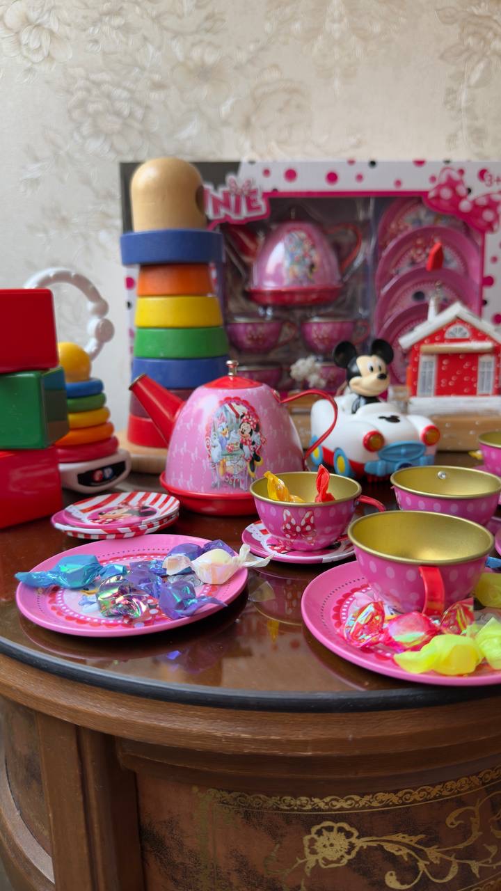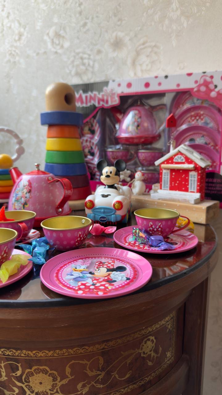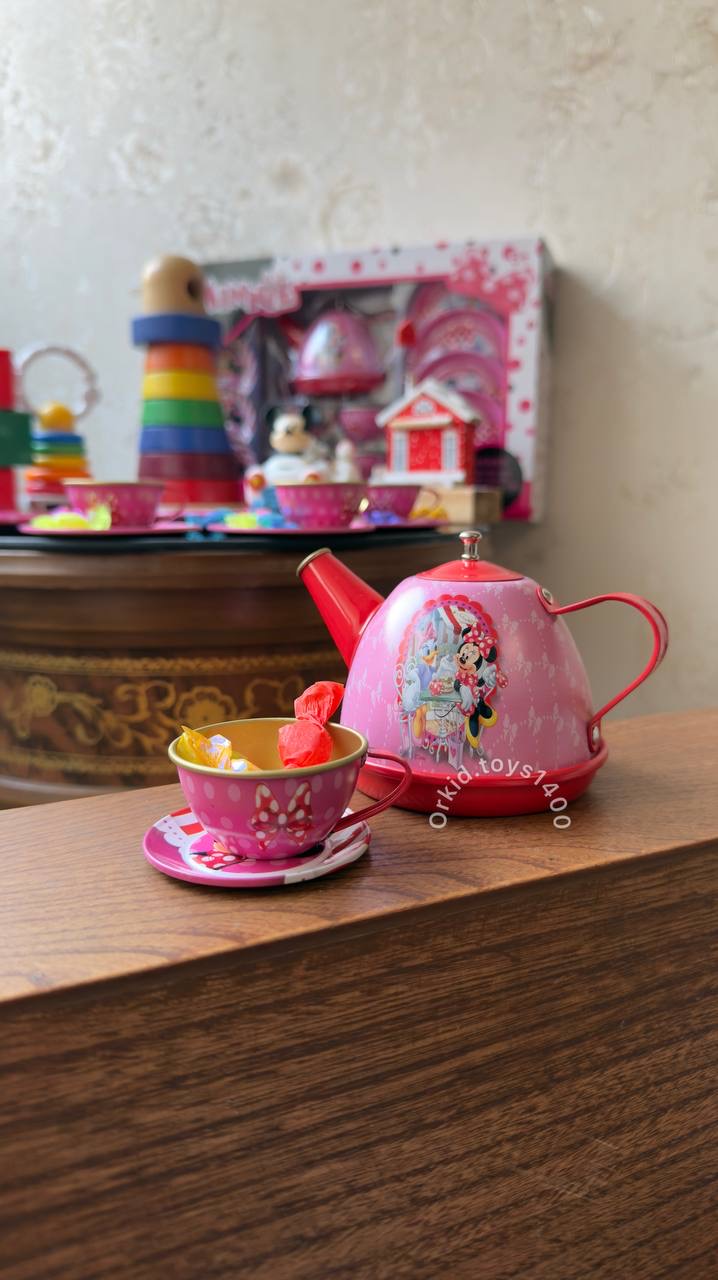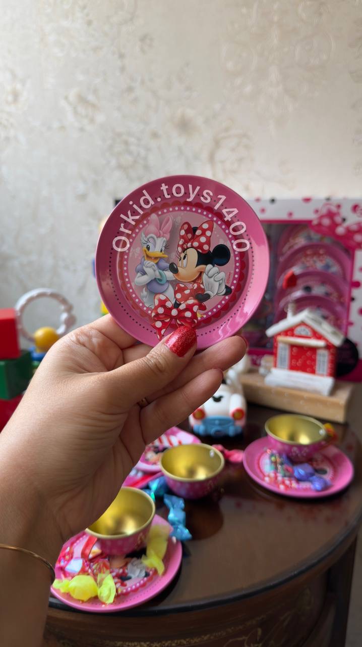 ست چایخوری فلزی لعابدار طرح مینی موسشامل یه قوریچهارتا فنجونچهارتا پیش دستی چهارتا نعلبکی و یه سینی