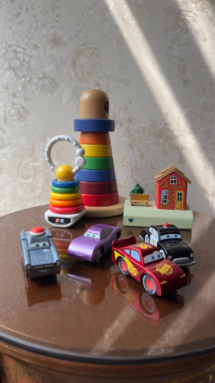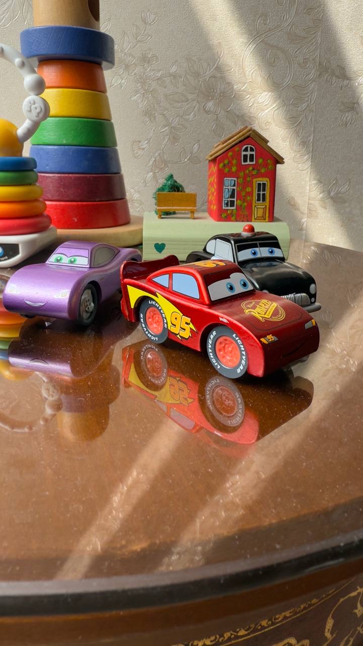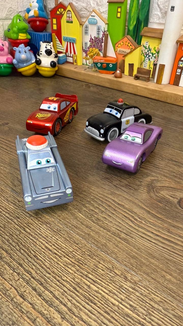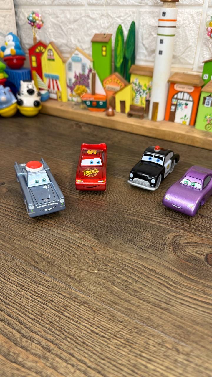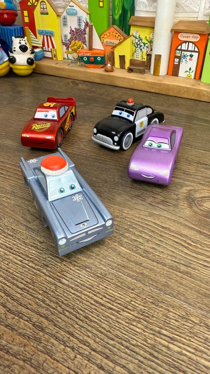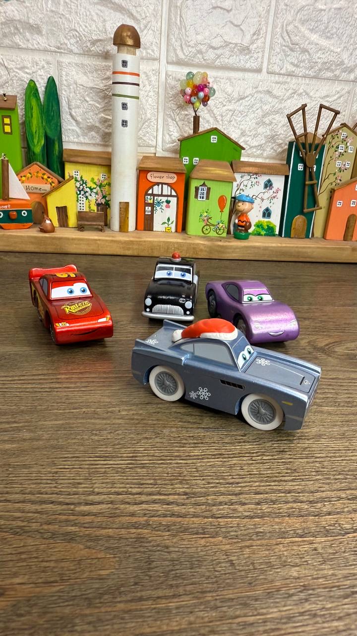 ست چهارتایی ماشینهایِ مک کویین اورجینال دیزنی چوبی مارکشون زیر هر کدومشون درج شده چرخهاشون حرکت دارن مناسب بازی و دکور بسیار خاص و کلکسیونی