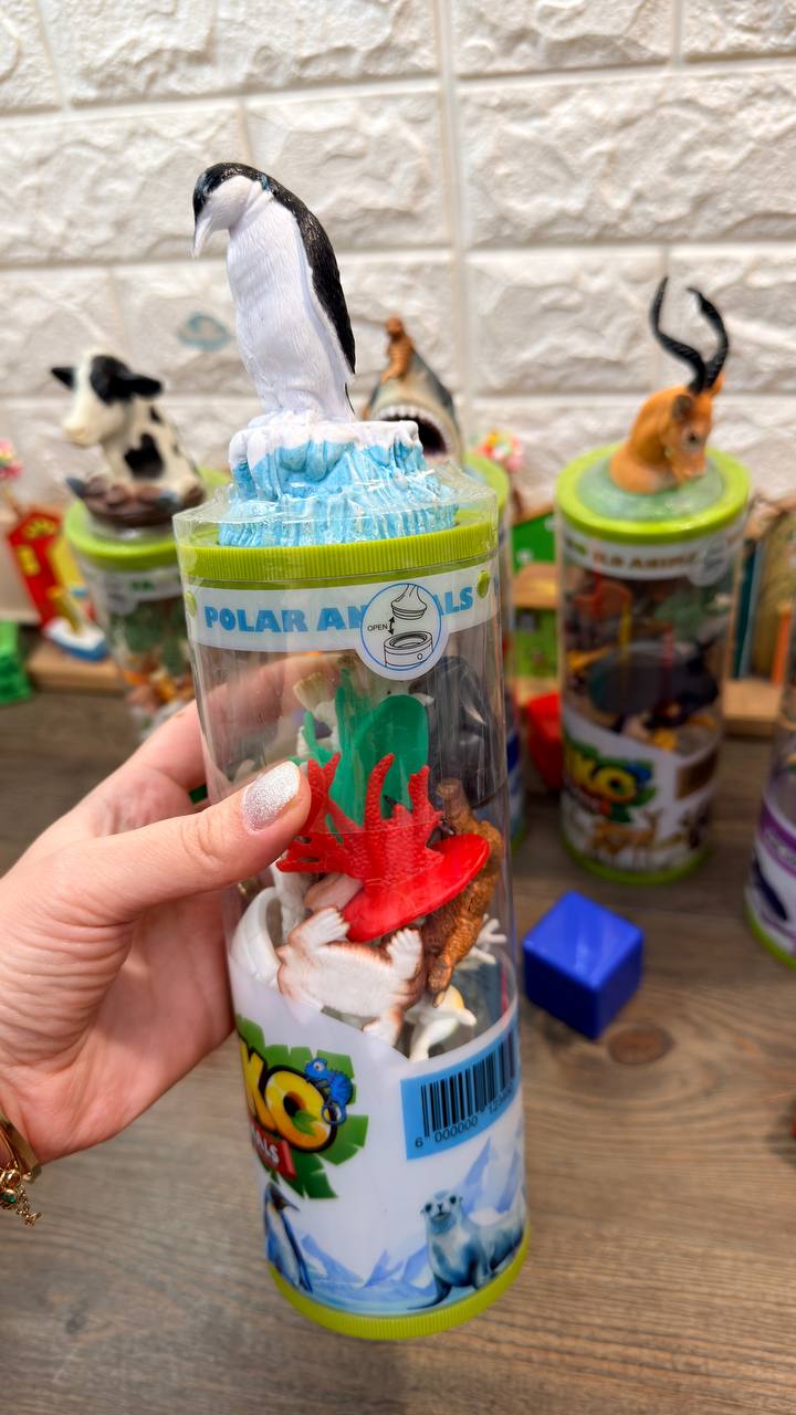 فیگورهای حیوانات با بسته بندی های بسبار خاص ست پنج تایی شامل اهلی،وحشی،دریایی،قطبی و حشرات ست شش تایی شامل دو بسته حیوانات اهلی ، یک بسته حیوانات جنگل یک بسته حیوانات دریایی یک بسته حیوانات قطبی و یک بسته حشرات بسته ی تکی حیوانات اهلی (به صرفه ترین حالت ممکن خرید ست ۶ تایی هستش)